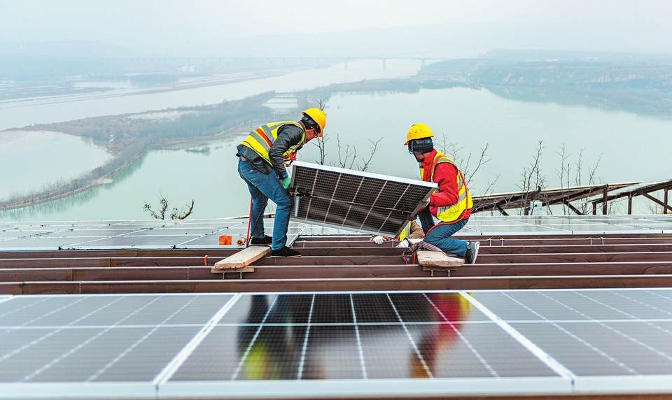 1月7日,施工人員在高空中安裝光伏板。芮城縣莊上村在“2MW光儲直柔直流微網(wǎng)”項(xiàng)目建設(shè)中,嚴(yán)格按照安全施工要求,對高空作業(yè)人員使用的安全帶、頭盔、手套等設(shè)備,作業(yè)之前逐個檢查,并對高空作業(yè)人員進(jìn)行安全常識教育,做到安全生產(chǎn)萬無一失。(薛俊攝)