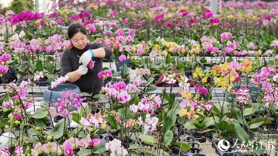 基地員工忙著對(duì)蝴蝶蘭進(jìn)行組盆。丁華明攝人民網(wǎng)宿遷1月13日電 (黃啟源)臨近春節(jié),江蘇沭陽縣耿圩鎮(zhèn)的蝴蝶蘭基地里百花爭(zhēng)妍,恰似彩蝶起舞。作為當(dāng)?shù)靥m花產(chǎn)業(yè)化示范園區(qū),這里培植有60余個(gè)蘭花品種,目前年實(shí)現(xiàn)產(chǎn)值過億元。基地年累計(jì)用工600余人,其中相當(dāng)一部分是當(dāng)?shù)氐褪杖霊簦蔀槊咳嗣磕暝黾庸べY性收入4萬余元。