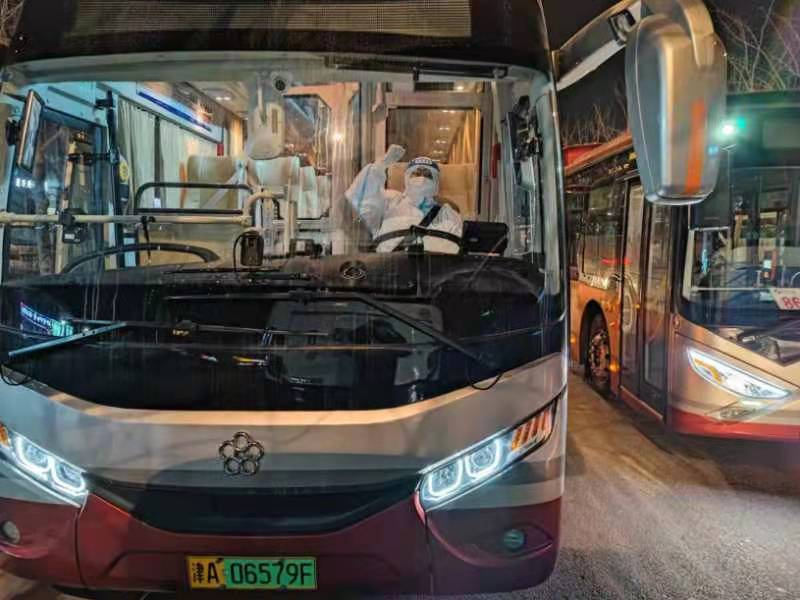 天津公交集團(tuán)派出人員、車輛做好防范區(qū)以內(nèi)人員轉(zhuǎn)運(yùn)和交通保障工作。天津市國(guó)資委黨委宣傳處供圖