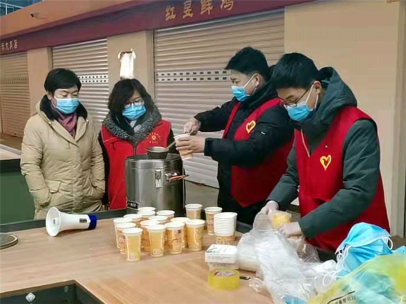 志愿者為核酸檢測(cè)工作人員熬制臘八粥。寧河區(qū)供圖