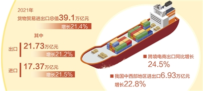 “2021年是黨和國家歷史上具有里程碑意義的一年。面對全球新冠肺炎疫情帶來的嚴重沖擊,我國外貿(mào)進出口依然展現(xiàn)了強勁的韌性,在困難多、挑戰(zhàn)大的情況下交出了一份亮眼的成績單?!崩羁恼f。