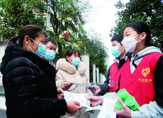 1月23日,在金華婺城區(qū)城西街道河盤橋社區(qū),租住在老肉聯(lián)宿舍等地的外來務(wù)工人員子女,趁著放寒假當(dāng)起垃圾分類宣傳員,給河盤橋社區(qū)居民分發(fā)宣傳冊,講解《金華市生活垃圾分類管理條例》和“兩定四分”投放規(guī)定,協(xié)助社區(qū)向居民贈送垃圾袋。(時寬兵)