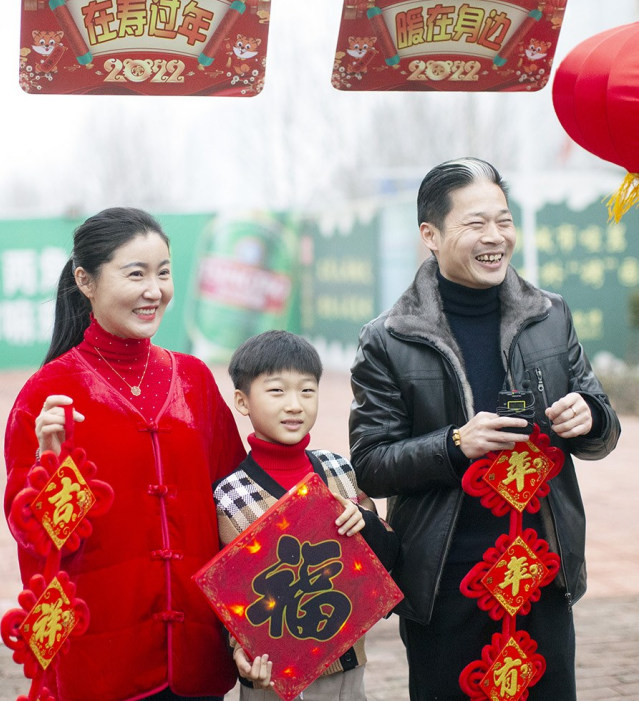 來自湖南常德市的董海敬一家人,正在忙著做糖葫蘆。“我覺得糖葫蘆傳遞出的是年的香甜,參加這個(gè)活動(dòng)前,我就特意提報(bào)了這樣一個(gè)環(huán)節(jié),也聯(lián)系到了一位做糖葫蘆的老藝人,大家一起動(dòng)手做糖葫蘆的感覺特別棒?!彪S后,一家人在祝福墻上,寫下了溫馨的祝福話語。董海敬告訴記者,春節(jié)將至,忙碌了一年的人們開始買新衣、購年貨,小區(qū)里張燈結(jié)彩、裝飾一新,到處一派熱鬧祥和的景象?!拔襾韷酃?年多了,在這里,我深深地感受到‘第二故鄉(xiāng)’的溫暖,尤其是這次與來自五湖四海的‘家人們’一塊‘過年’,既幸福又激動(dòng)!”