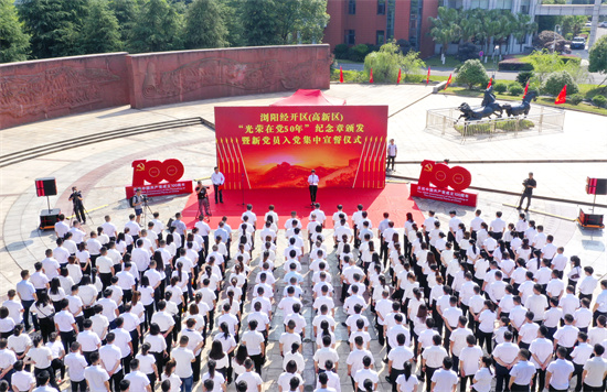 園區(qū)舉行“光榮在黨50年”紀(jì)念章頒發(fā)暨新黨員入黨集中宣誓活動(dòng)。受訪單位供圖