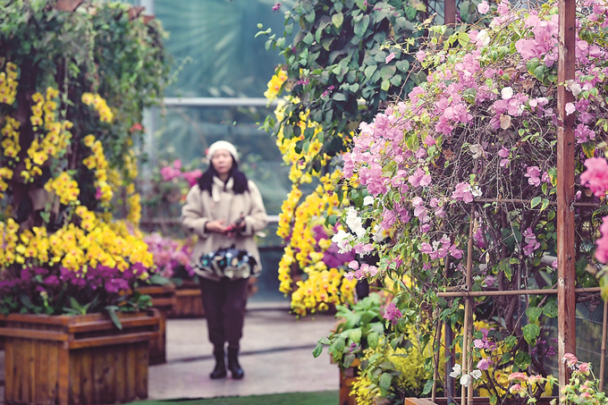 26日,南京中山植物園新春蘭花展開幕,兜蘭、捧心蘭、彗星蘭等多個品類的蘭花爭奇斗艷,營造出濃郁的新春氣息。圖為游客在南京中山植物園參觀新春蘭花展。 本報記者 邵丹 通訊員 秦亞龍 攝
