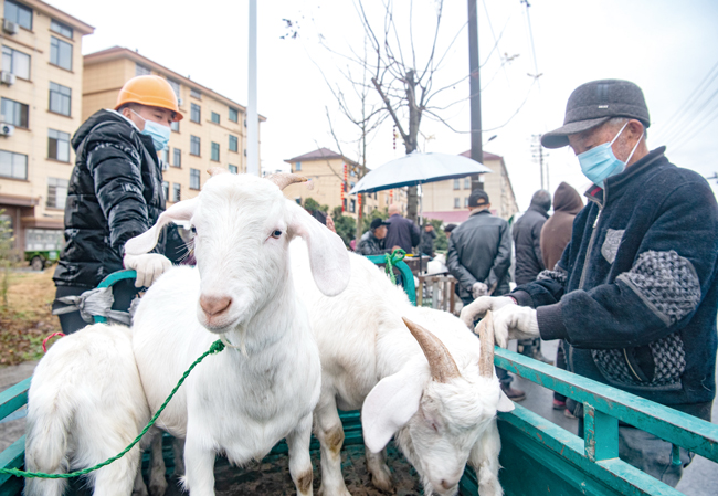 1月24日,金華市金義新區(qū)赤松鎮(zhèn)仙橋臘月第一個(gè)活羊集市開(kāi)市,各地農(nóng)戶(hù)運(yùn)來(lái)自家飼養(yǎng)的活羊上市交易。(時(shí)寬兵)
