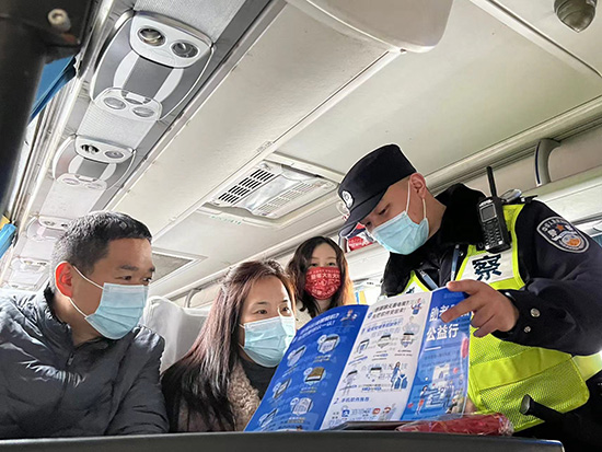 民警在汽車(chē)站做防騙宣傳。 人民網(wǎng) 王文娟攝