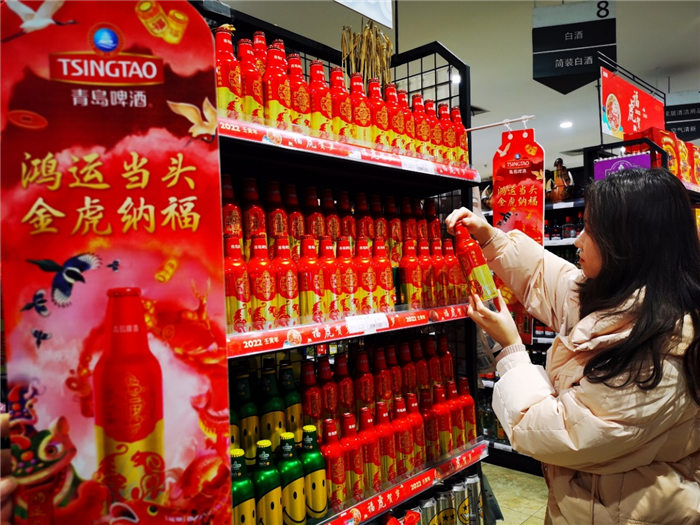年味不僅是物質(zhì)上的豐富,也有文化上的追求?!斑^(guò)年就買‘鴻運(yùn)當(dāng)頭’,圖個(gè)好彩頭?!毕M(fèi)者王先生每年過(guò)年都會(huì)“鴻運(yùn)當(dāng)頭,先囤一波”,作為年夜飯的“必選項(xiàng)”?!澳暌癸埍仨毤t紅火火,不管是名字還是包裝,鴻運(yùn)當(dāng)頭就是喜慶,而且酒也好喝,每年還出不同的生肖版,我都收藏著著呢?!痹S多消費(fèi)者表示,這款青島啤酒成為春節(jié)當(dāng)之無(wú)愧的“鴻運(yùn)”年貨,走親訪友拎上一提,年味就出來(lái)了。