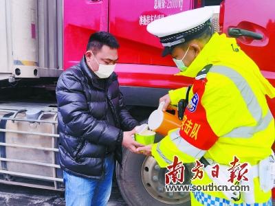 在粵北韶關(guān),雨雪冰凍等惡劣天氣是影響交通安全的重要因素。韶關(guān)交警在粵北執(zhí)勤點(diǎn)部署了50名執(zhí)勤警力,分5班次進(jìn)行24小時輪值。