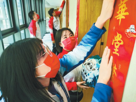 昨天上午,菲律賓、東帝汶、摩納哥、智利、馬達(dá)加斯加、法國共6個(gè)代表團(tuán)14人入境后進(jìn)村入住。下午,拉脫維亞、希臘、斯洛文尼亞、意大利、中國臺(tái)北等14個(gè)代表團(tuán)92人進(jìn)村。目前,村內(nèi)居民達(dá)到近800人。抵達(dá)當(dāng)天恰逢中國除夕,運(yùn)動(dòng)員一進(jìn)村就感受到一個(gè)別樣的運(yùn)動(dòng)員之家。各個(gè)居住組團(tuán)高高掛起中式六角造型宮燈,每間運(yùn)動(dòng)員公寓也都貼上了對(duì)聯(lián),年味撲面而來。