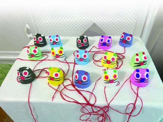 記者來到吳為民的工作室里,一提到“皮老虎”,吳為民滔滔不絕?!啊だ匣ⅰ怯媚嗯吣蟪煽蓯鄣男±匣⒌臉幼?,通過一只手握住它,另一只手滑動它身上的紅線,就會發(fā)出各種動物的叫聲。我做的這個‘皮老虎’,它能發(fā)出許多種動物的叫聲。”吳為民一邊說著一邊為記者演示,“隨著滑動的頻率的變化,它能發(fā)出各種惟妙惟肖的聲音,有貓叫、青蛙的叫聲、老母雞的叫聲等等?!?/p>