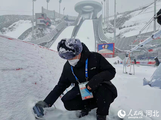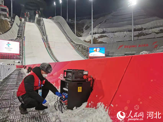 國(guó)家跳臺(tái)滑雪中心電力保障團(tuán)隊(duì)在賽事后檢查用電設(shè)備。 韓寶喜攝