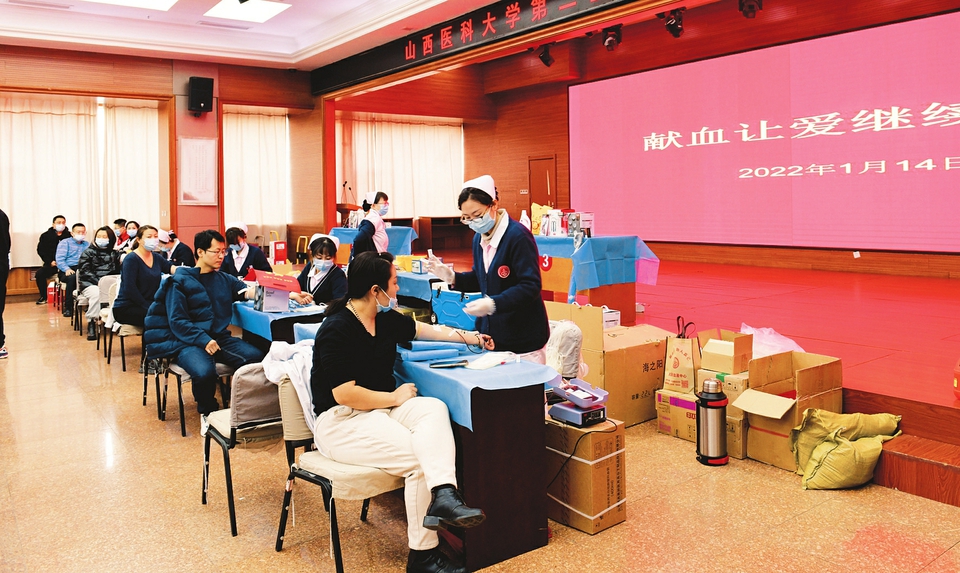 近日,山西醫(yī)科大學(xué)第二醫(yī)院一年一次的義務(wù)獻(xiàn)血“獻(xiàn)血讓愛繼續(xù)跳動”公益活動在該院影像樓進(jìn)行,醫(yī)務(wù)人員、職能部門和后勤工作人員共264人參與。大家依次填表、體檢、化驗、采血,積極獻(xiàn)出一份愛心,以實際行動踐行對生命的關(guān)愛,體現(xiàn)了強烈的社會責(zé)任感。(周慧芳 孟亮圖/文)