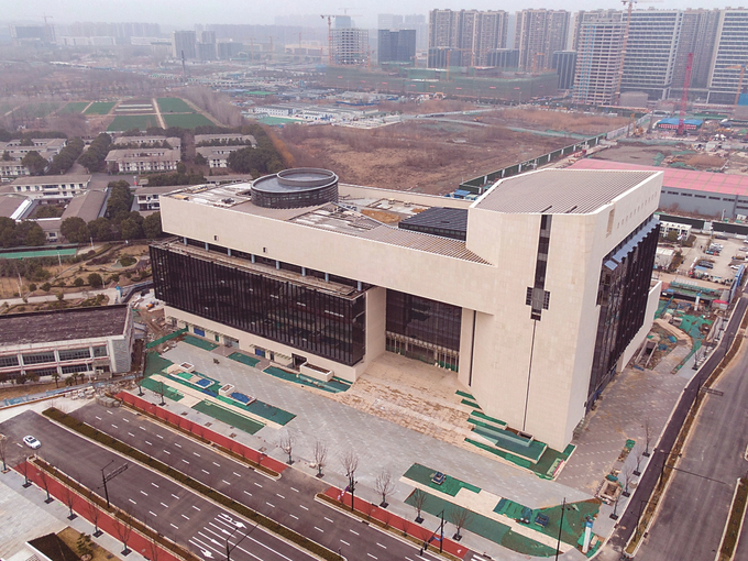 南京江北圖書(shū)館日前已基本完工。江北圖書(shū)館定位為國(guó)家一級(jí)圖書(shū)館,為公眾提供公益性終身學(xué)習(xí)、開(kāi)放、自由、社交與休閑為一體的閱讀空間,突破單一的圖書(shū)館功能,使其成為國(guó)際化現(xiàn)代化的“城市文化客廳”和“市民書(shū)房”。圖為15日,空中俯瞰江北圖書(shū)館項(xiàng)目建設(shè)現(xiàn)場(chǎng)。 本報(bào)記者 陳儼 攝
