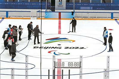 另外,在比賽場地的運動員準備區(qū),冬奧會時原有的幾段實心板墻已換成透明的板墻,方便冬殘奧運動員及時看到場內(nèi)的比賽情況;在比賽場地周邊的橡膠墊上覆蓋了仿冰板,便于輪椅冰橇滑行;無障礙通道則從更衣室一直通到賽場。