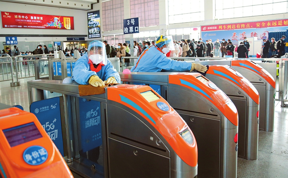近期,面對學生流、節(jié)后探親返程流、務工流“三流”疊加,運城北站一手抓疫情防控,一手抓旅客組織,加強候車廳常態(tài)化疫情消殺制度,傾力確保旅客運輸平穩(wěn)有序。(王文華攝)