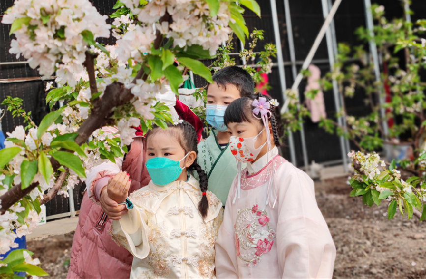 走進(jìn)茶淀街道孟家瞿卩村種植戶(hù)于長(zhǎng)晶的大棚,仿佛置身于花海之中。大棚外春寒料峭,大棚內(nèi)溫度適宜、花開(kāi)正艷。櫻桃花盛開(kāi)的美景吸引了不少游客前來(lái)打卡拍照,有的小游客為了拍出好看的照片,還特意穿來(lái)漢服來(lái)和櫻桃花合影拍照。農(nóng)戶(hù)搶抓農(nóng)時(shí),辛勤勞作,確保今年的櫻桃豐產(chǎn)豐收?!皺烟夜芾硇枰饲诳?,不能偷懶。”于長(zhǎng)晶一邊忙著給櫻桃樹(shù)修剪枝條一邊說(shuō)道。這幾天,她和家人每天都很忙碌,盡管勞累,但心里卻很高興。于長(zhǎng)晶說(shuō):“我們今年借助科學(xué)管理,有的大棚里的櫻桃已經(jīng)結(jié)出果實(shí)。大概到3月下旬,大片櫻桃都成熟了,到時(shí)候游客就可以來(lái)采摘了。”