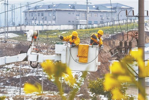 2月24日,田間地頭的白雪尚未融化,油菜花卻已悄然開(kāi)放。國(guó)家電網(wǎng)洪江市供電公司工作人員在黔城鎮(zhèn)雙溪社區(qū)對(duì)10千伏巖垅線016號(hào)桿帶電解除引流線,確保線路正常供電。 胡浩 攝