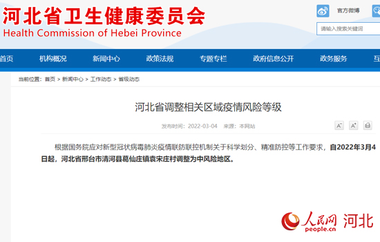 河北省調(diào)整相關(guān)區(qū)域疫情風(fēng)險等級 清河縣1地調(diào)整為中風(fēng)險地區(qū)