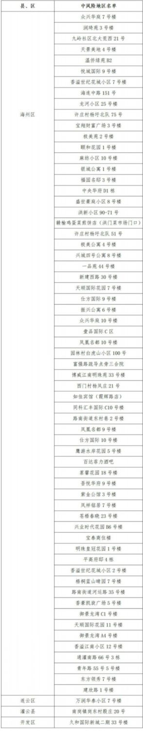 連云港市66個中風(fēng)險地區(qū)詳細(xì)名單(2022年3月11日)