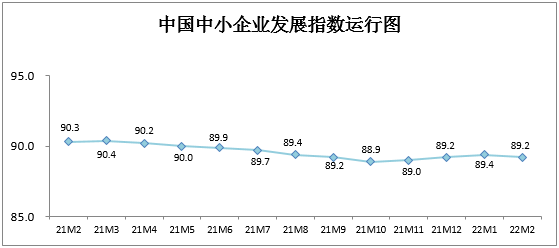 人民網(wǎng)北京3月10日電 (王仁宏)近日,中國中小企業(yè)協(xié)會發(fā)布2022年2月中國中小企業(yè)發(fā)展指數(shù)。數(shù)據(jù)顯示,受疫情和春節(jié)放假等因素影響,2022年2月中小企業(yè)發(fā)展指數(shù)(SMEDI)為89.2,按可比口徑環(huán)比下降0.2點,在連續(xù)三個月上升后略有下降,低于2021年同期水平。