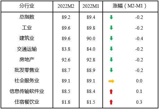 企業(yè)信心有待穩(wěn)固。外部環(huán)境不穩(wěn)定不確定因素增多;國內(nèi)疫情點多、面廣、頻發(fā),對接觸性服務(wù)業(yè)的影響加大,大宗原材料價格反彈,影響中小企業(yè)發(fā)展信心。反映企業(yè)信心的宏觀經(jīng)濟感受指數(shù)為98.3,比上月下降0.3點。所調(diào)查的8個行業(yè)中,5個行業(yè)宏觀經(jīng)濟感受指數(shù)下降。