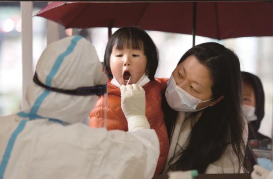 3月20日,在嘉興秀洲區(qū)新城街道核酸采樣點(diǎn),市民們冒雨前來參加核酸檢測(cè)?,F(xiàn)場(chǎng),有不少小朋友跟著家長(zhǎng)參加檢測(cè),面對(duì)和藹可親的醫(yī)護(hù)人員,小朋友們積極配合,一個(gè)個(gè)表現(xiàn)得特別勇敢。(馮玉坤)