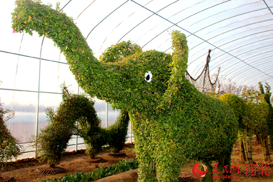 人民網(wǎng)石家莊3月20日電 (周博)早春三月,修枝剪葉正當時。大象、梅花鹿、長頸鹿……走近河北定州孟亮苗圃基地,原本雜亂的枝條通過村民們的巧手,變幻出不同的造型矗立大棚內,400余株苗木長勢喜人,好不熱鬧。