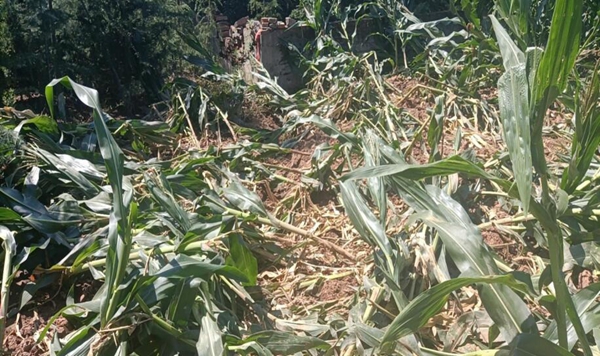 南京老山地區(qū)農(nóng)民的玉米地被野豬破壞的場(chǎng)景。浦口區(qū)湯泉街道農(nóng)業(yè)辦供圖