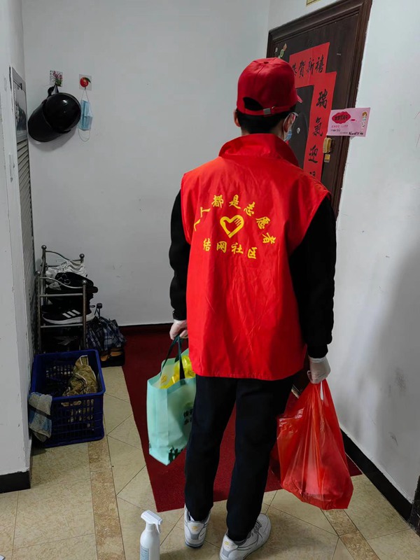 “我們有一個(gè)微信群,居家隔離人員如果有采購(gòu)需求,可以列好清單發(fā)給群里的社區(qū)工作人員,第二天一早就有服務(wù)隊(duì)成員為其采購(gòu)物品并送到家門口?!焙闈硎荆绻蛹腋綦x人員有快遞要拿,他們也會(huì)幫著跑腿取件。“隔離病毒不隔離愛(ài),希望通過(guò)我們的工作能為居民們帶去更多溫暖?!焙闈f(shuō)。