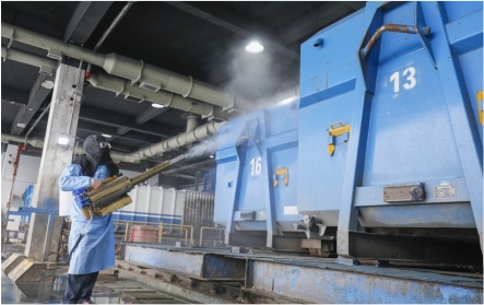 東臺(tái)環(huán)衛(wèi)處對垃圾中轉(zhuǎn)站、環(huán)衛(wèi)車輛、果皮箱、公共廁所等進(jìn)行消殺大掃除,筑牢公共環(huán)境安全屏障。東臺(tái)市委宣傳部供圖