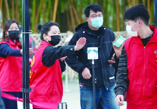 連日來,在金華市區(qū)市民廣場核酸采樣點(diǎn),公益組織的志愿者們利用自己的休息時間,在現(xiàn)場協(xié)助醫(yī)務(wù)人員引導(dǎo)市民有序測溫,出示健康碼和行程卡,同時提醒市民戴好口罩,保持一米距離。據(jù)了解,這些志愿者來自各行各業(yè),他們當(dāng)中有民營企業(yè)主、企事業(yè)單位工作人員、教師、出租車司機(jī)、退休人員等,他們在各個核酸采樣點(diǎn)義務(wù)值守,為疫情防控出一份力。(時寬兵)