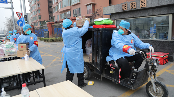 北京朝陽園小區(qū):一線防疫人員當臨時"騎手" 保障居民生活
