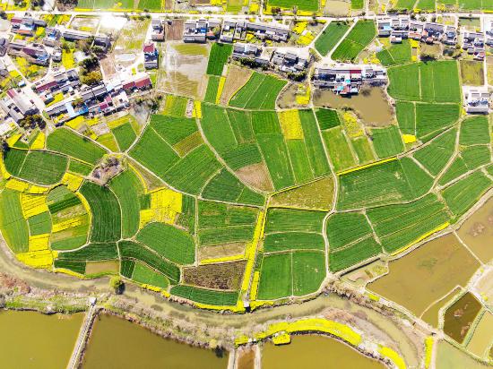 揚(yáng)州:麥田和油菜花田組成春天“調(diào)色板”
