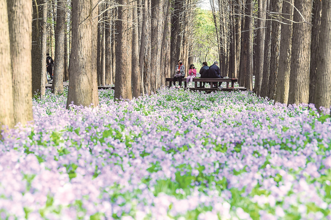 3月26日,天氣晴好,建鄴區(qū)江心洲青奧森林公園內(nèi)的二月蘭匯成一片紫色花海,春意盎然。漫步在林中曲折的生態(tài)廊道,遍布林間的二月蘭和高大靜謐的茂密池杉林共同構(gòu)成了一幅引人入勝的“外景地”。 本報(bào)記者 邵丹 攝