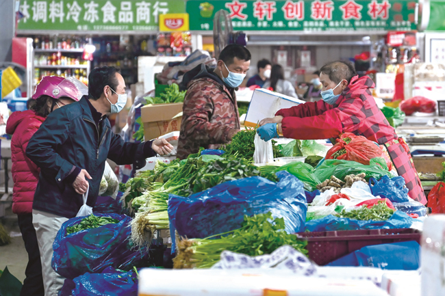 3月30日,在嘉興南湖區(qū)荷花堤臨時(shí)菜場,疫情防控人員嚴(yán)格落實(shí)防疫措施,凡是進(jìn)入菜場必須規(guī)范戴好口罩,掃行程碼,出示行程卡,測量體溫。菜場內(nèi)各類攤位貨物充盈,價(jià)格平穩(wěn),讓老百姓的“菜籃子”又穩(wěn)又安全。(張啟帆)