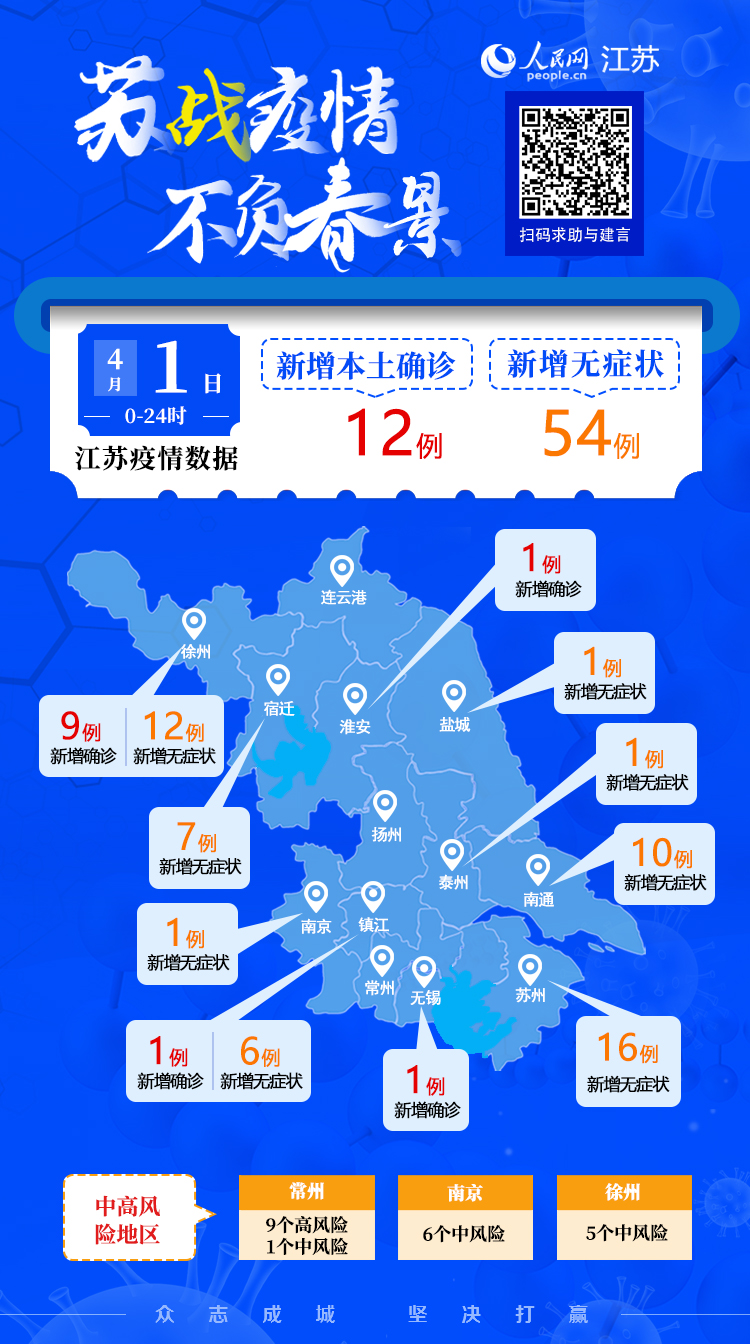 4月1日江蘇新增本土確診病例12例 本土無(wú)癥狀感染者54例