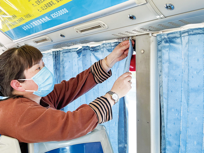 4月6日,金華市區(qū)523路公交車開始安裝遮陽簾。隨著天氣逐漸轉(zhuǎn)熱,金華金東所有公交車將陸續(xù)安裝上遮陽簾。車隊長周英飛說,安裝了遮陽簾,乘車舒適度會大為改善。(李建林)