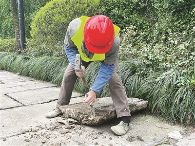 “我們秉持‘最小干預(yù)’的原則——結(jié)構(gòu)層穩(wěn)定的老石板,原則上不修;需要修繕的老石板,則嚴(yán)格遵守‘修舊如舊、保留肌理’的原則。”杭州園林設(shè)計(jì)院股份有限公司相關(guān)負(fù)責(zé)人介紹,“一般兩種情況下才進(jìn)行修復(fù),一是樹池周邊起拱、松動(dòng)嚴(yán)重,二是老石板破損、松動(dòng)嚴(yán)重?!?/p>