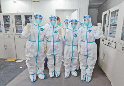 4月8日晚,隨著海南省援滬醫(yī)療隊近百名醫(yī)護人員的進(jìn)駐,上海嘉定南翔方艙醫(yī)院正式投入運行。圖為醫(yī)護人員在入艙前加油鼓勁。