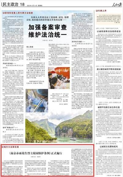 為進(jìn)一步賡續(xù)紅色血脈、宣傳和弘揚雨花臺英烈事跡與精神,2021年12月30日,南京市十六屆人大常委會第三十四次會議審議通過了《條例》。“這一《條例》與《南京市紅色文化資源保護(hù)利用條例》有效銜接,形成南京‘點面結(jié)合、相互呼應(yīng)’的紅色文化資源保護(hù)立法體系,為雨花英烈事跡與精神的宣傳和弘揚提供了更加堅強(qiáng)的法治保障?!蹦暇┦腥舜蠓ㄖ莆魅挝瘑T姚正陸說。