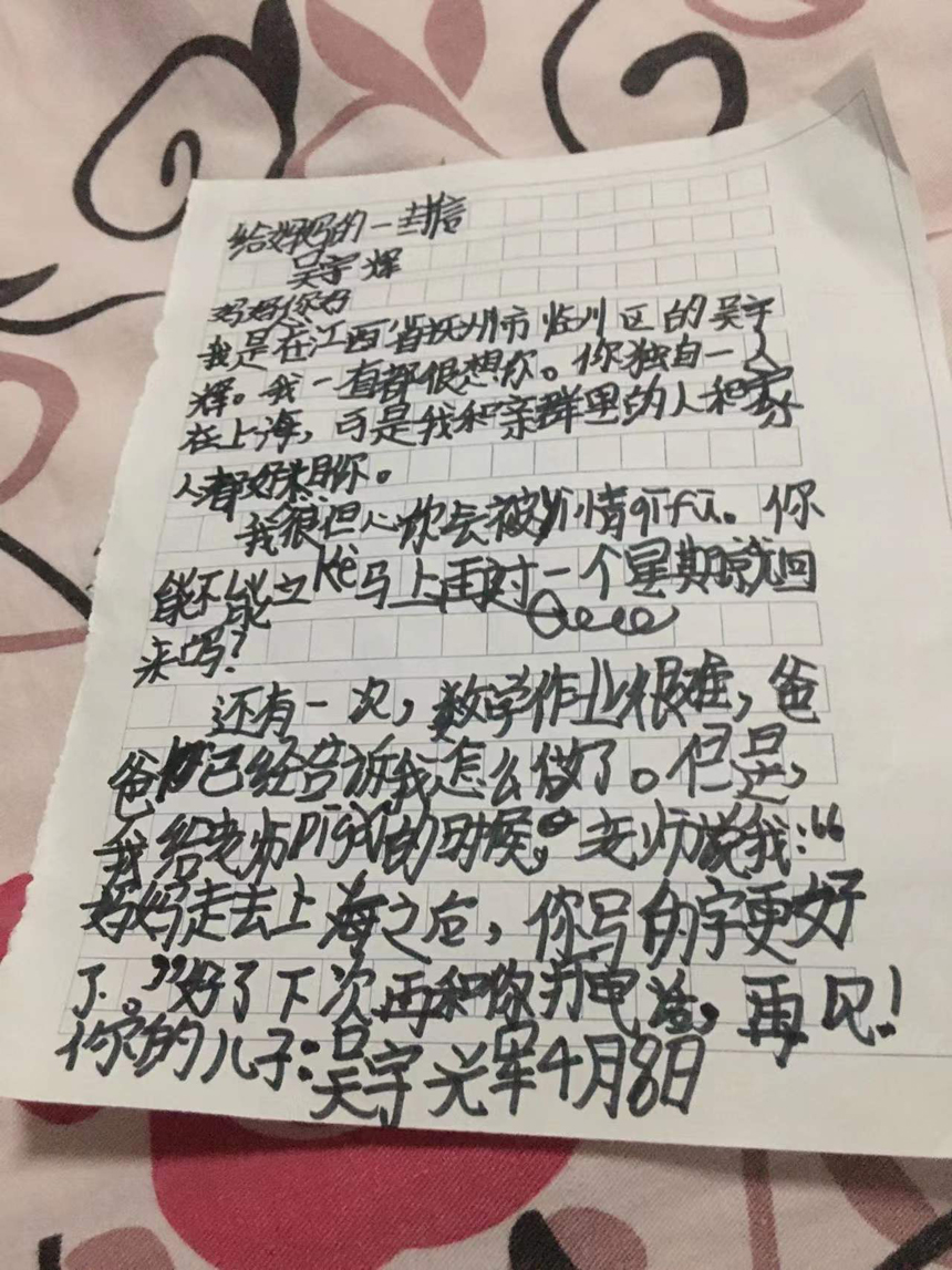 “收到回信后,孩子半天沒吱聲,看著看著眼眶就紅起來了?!眳怯钶x的奶奶說,他媽媽不在家的這段時間,懂事了好多。