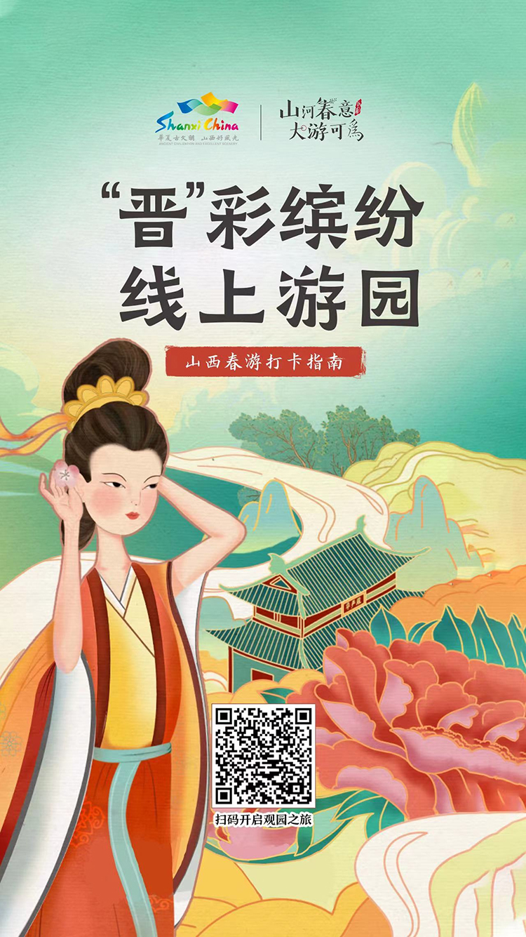 人民網(wǎng)太原4月20日電(桑莉媛)花開晉染、珍味晉有、芳華晉藝、匠心晉展。近日,山西省文化和旅游廳策劃推出了《晉彩繽紛·線上游園》互動(dòng)H5,以四大板塊來展示山西春日之美,邀廣大網(wǎng)友一起線上游園,云賞山西好風(fēng)光!