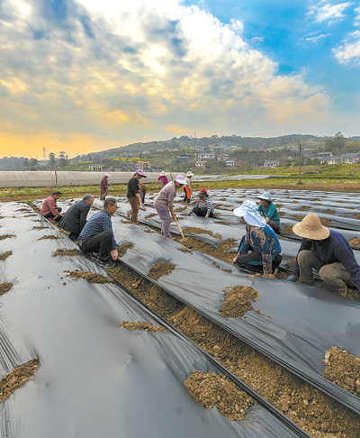 重慶市南川區(qū)南平鎮(zhèn),農(nóng)民正在鋪設(shè)全生物降解膜。
