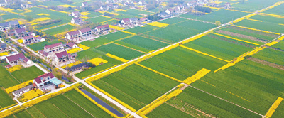 春耕時(shí)節(jié),農(nóng)機(jī)嗡嗡,春水汩汩,白鷺翩飛。由南向北,一行行稻秧逐漸栽滿水田,冬油菜開始結(jié)莢長(zhǎng)粒,麥苗陸續(xù)起身拔節(jié)、孕穗。