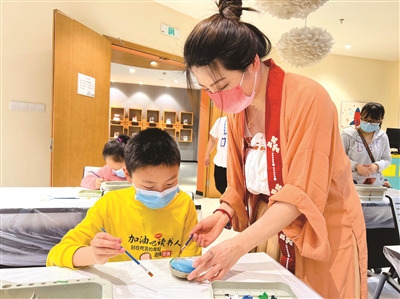 走進(jìn)臨平智慧圖書館,仿佛一秒“穿越”宋朝:攤好香席、鋪好香料,鋪灰、打篆、燃篆……身著漢服的打香人低頭焚香,裊裊青煙讓人不覺靜下心來;暖盞、調(diào)膏、擊拂……極具雅致的點(diǎn)茶表演將宋人吃茶的樂趣展現(xiàn)得淋漓盡致;起勢、抹弦、刮奏……撫琴人指尖翻飛,行云流水的樂曲讓聽眾陶醉其中……圖書館內(nèi),市民或欣賞或體驗(yàn)焚香點(diǎn)茶、撫琴對(duì)弈、書法繪畫、品茶飲酒、插花賞石等活動(dòng),當(dāng)了一回宋朝的“文藝青年”。