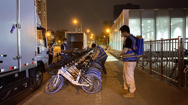 哈啰單車北京團(tuán)隊(duì)負(fù)責(zé)人胡濤介紹,近期團(tuán)隊(duì)臨時(shí)增加42名運(yùn)維人員和12輛調(diào)度車輛投入抗疫保障行動(dòng)。對(duì)每輛共享單車在出庫(kù)、入庫(kù)、調(diào)運(yùn)等環(huán)節(jié)中實(shí)施100%消毒,在重點(diǎn)景區(qū)、商圈、寫(xiě)字樓以及北京站、王府井、崇文門(mén)、望京等軌道交通站點(diǎn),每日分早中晚三個(gè)時(shí)段進(jìn)行無(wú)差別消殺。