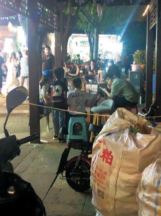 一路向西,類似的現(xiàn)象更是頻頻出現(xiàn),個別商家仍在做著“路邊攤”的生意。一名商戶告訴記者,因為點(diǎn)餐需要排隊,所以在便道上設(shè)置了等候區(qū),掃碼點(diǎn)餐時商戶已和顧客講明,只能點(diǎn)選打包帶走。記者眼見那些餐食果真裝進(jìn)打包餐盒,送到了所謂的等候區(qū),可是顧客拿到手并未離開,打開餐盒立刻大快朵頤,顯然等候區(qū)只是給堂食外擺打了個掩護(hù)。