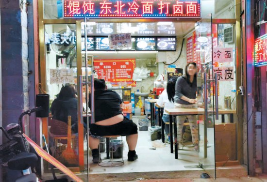 打開大眾點(diǎn)評,先選一些口碑爆棚的小吃打包,然后帶到周邊餐館里再點(diǎn)些菜,正餐、小吃都不耽誤,這是不少年輕人逛街的習(xí)慣。記者探訪發(fā)現(xiàn),目前在沿街大多數(shù)餐館不提供堂食服務(wù)的情況下,網(wǎng)紅小吃窗口前的顧客無處可去,久久不散。很多人在小吃窗口前“就地消化”,烤串、蛋糕,這些小吃食用方便,有沒有桌子、餐具都無所謂,在小吃窗口前找個椅子坐下,形成路邊大排檔,沒有桌子間隔著,用餐人員挨得更近了。