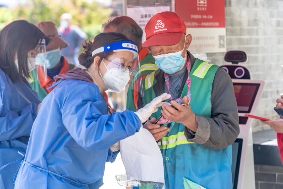 裴艷虹告訴記者,社區(qū)里老年人比較多,現(xiàn)場的工作人員需要特別有耐心,一點一點幫他們輸入信息。在太陽底下站了3個多小時的她,雖然很累,但看到有些80多歲的老人本可以在家等著上門檢測,卻還自己主動下樓檢測,“他們是不愿給別人添麻煩,讓我很感動,我累點也值得。”裴艷虹表示,自己是一名黨員,也曾是一名醫(yī)務(wù)工作者,守護好人民群眾的身體健康和生命安全,是義不容辭的責(zé)任。